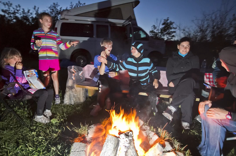 Cette photo a été prise au coeur d’une partie endiablée de « Loup Garou » (ou sa version soft qui fait moins peur aux enfants – « Mafia »). Rien de mieux devant un feu avec des guimauves bien grillées…