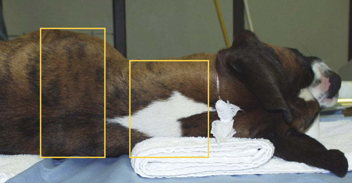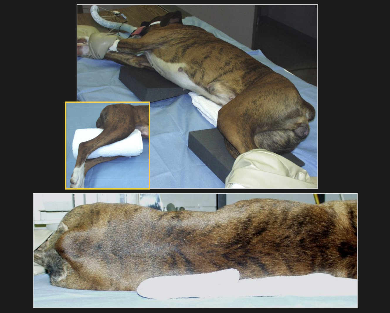 - Maintenir les membres pelviens en position anatomique normale, légèrement en extension caudalement.